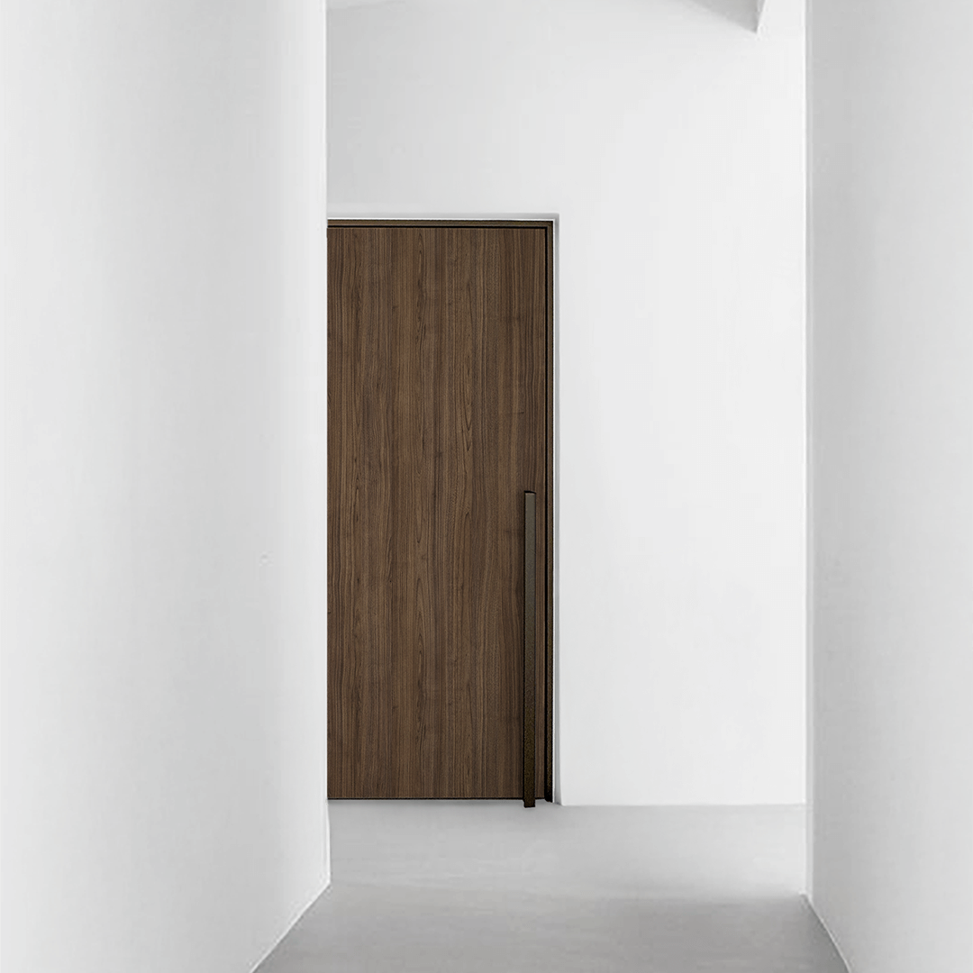 - Laat materiaal spreken – marmer emperador, een kastenwand in walnoot en details in brons of messing zorgen voor een krachtige, maar serene materialiteit.
