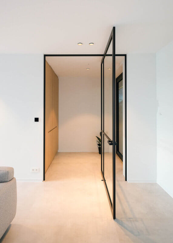 Aluminium steel look deuren bieden niet alleen visuele elegantie, maar ook comfort in het dagelijks gebruik. Dankzij het lichtere gewicht openen en sluiten ze met een soepele en stillere beweging, wat bijdraagt aan een aangename woonomgeving. In combinatie met een uiterst fijne deuromlijsting zorgen zowel de swing- als pivotdeuren van ANYWAYdoors voor een goede geluidsdemping tussen ruimtes. Ook op het vlak van warmte-isolatie zorgen ze mee voor een comfortabel binnenklimaat. Waar stalen deuren vaak robuuster ogen, maken aluminium deuren het verschil in verfijning, gebruiksgemak en thermisch/akoestisch comfort – zonder in te boeten op stijl.
